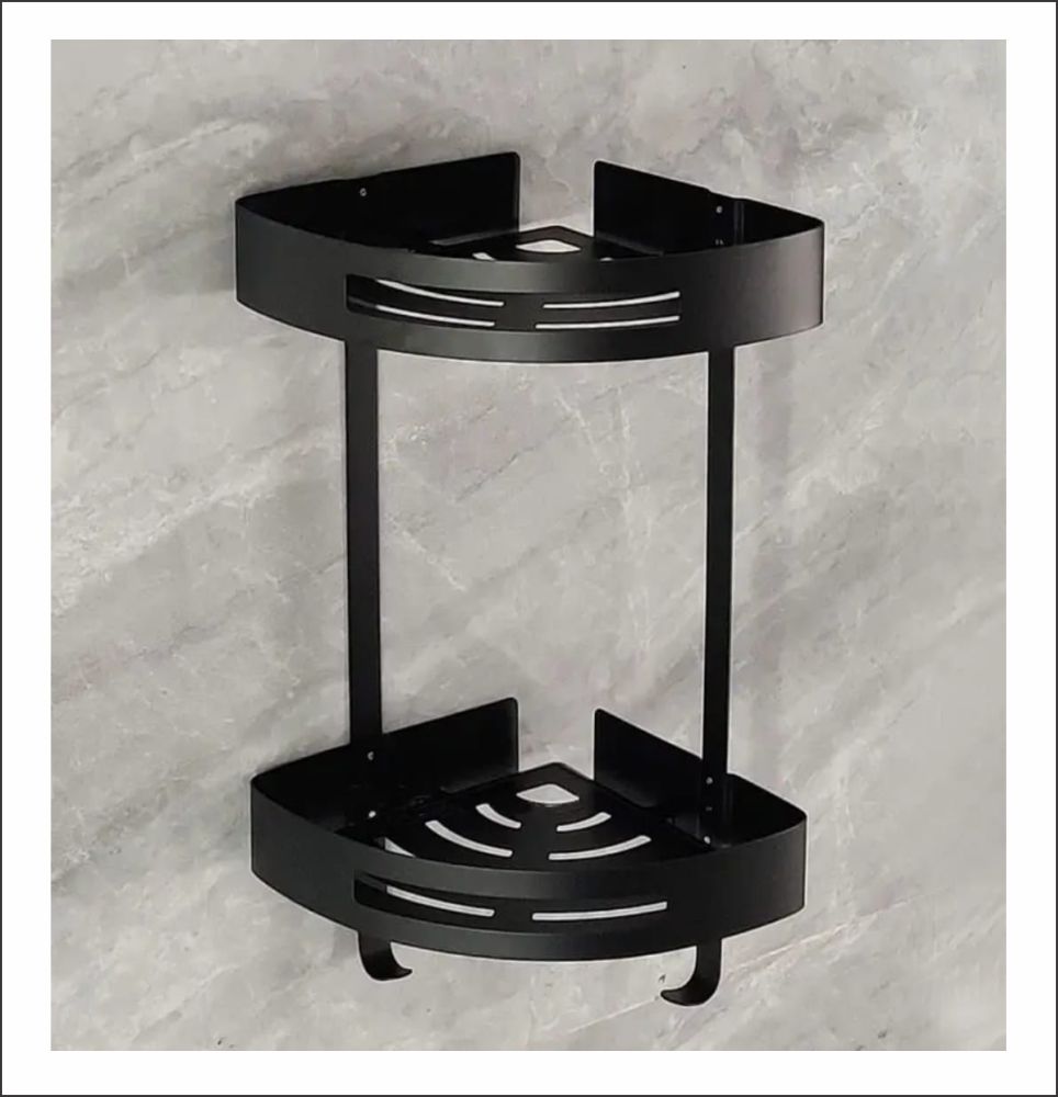 Yeh modern aur stylish double layer corner shelf high-quality stainless steel (SS) material se bana hua hai, jo rust-proof, water-resistant aur long-lasting hota hai. Is ka matte black finish bathroom ya kitchen ko ek premium aur elegant look deta hai.